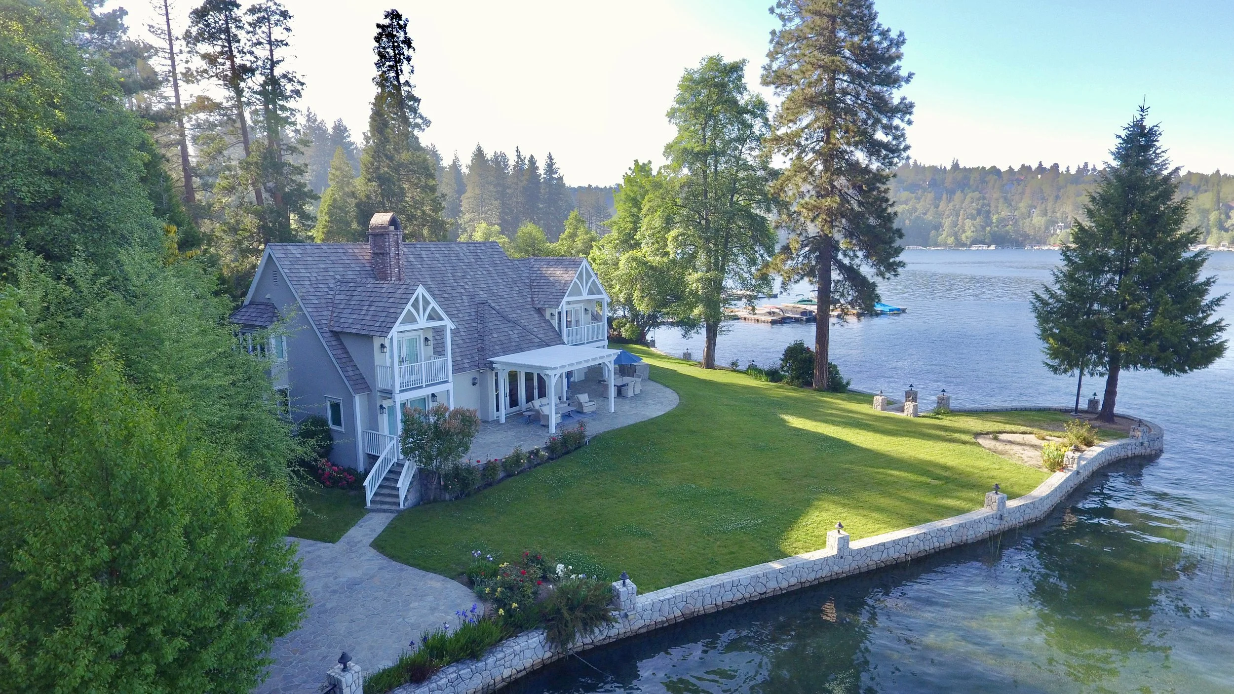One of The Most Treasured Waterfront Properties in Southern California Captures the Point of Hamiltair Estates - A Legendary & Iconic Location. Special Features Include: Private Drive leading down to the level, gated Peninsula with impressive wide-angle lake views - Magnificent 5 bedroom mountain chalet - Master Suite on the main - North Wing bunk room & guest suite offers caretakers quarters - Great Room charm enriched by the 2 story split granite fireplace - Rare 324 foot private shoreline with double boat dock - Truly a one-of-a-kind offering you'll want to keep in the family for generations to come.
